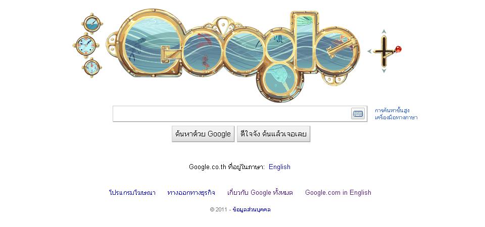 ในวันนี้ Google Doodle ได้นำเสนอภาพเคลื่อนไหวที่ีคุณสามารถบังคับเองได้จาก คันบังคับด้านขวา โดยที่คำว่า GOOGLE จะทำเสมือนกระจกของเรือดำน้ำ เมื่อโยกคันโยกซ้าย-ขวา ภาพนอกหน้าต่่างจะเคลื่อนไหวเหมือนคุณกำลังอยู่ในเรือดำน้ำในเรื่อง ผจญภัยใต้ทะเลสองหมื่นโยขน์
